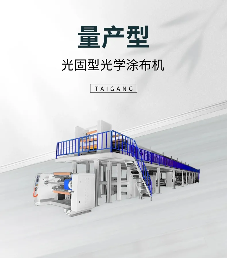 OCA、VHB、可移胶、调光膜、液晶屏光固型光学涂布机是专为多种功能性材料设计的生产设备。它适用于粘接类胶带与光学薄膜的均匀涂覆,满足不同材质间的复合需求,助力实现平滑过渡和稳定附着效果,广泛服务于显示模组、触控面板等领域的生产流程。
